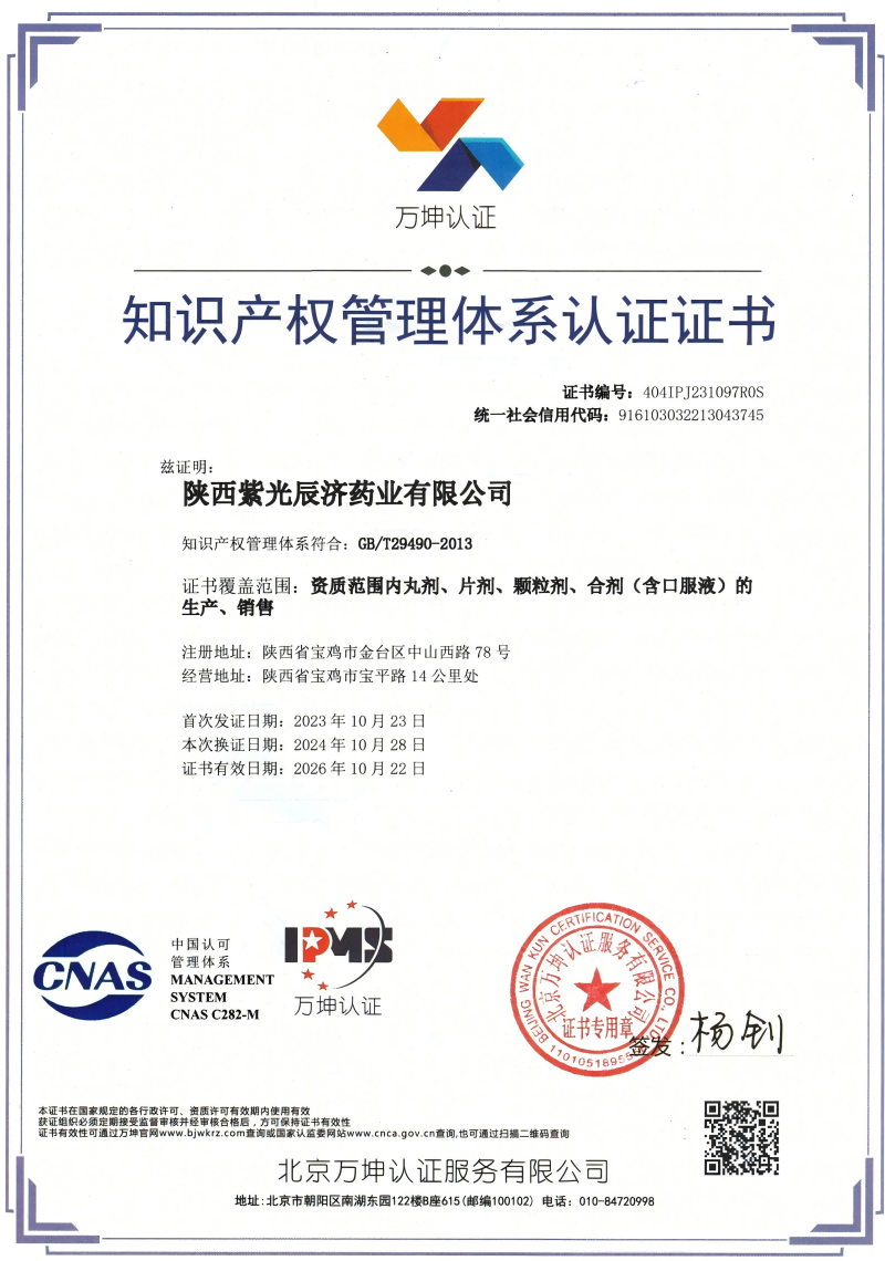 知识产权管理体系认证证书