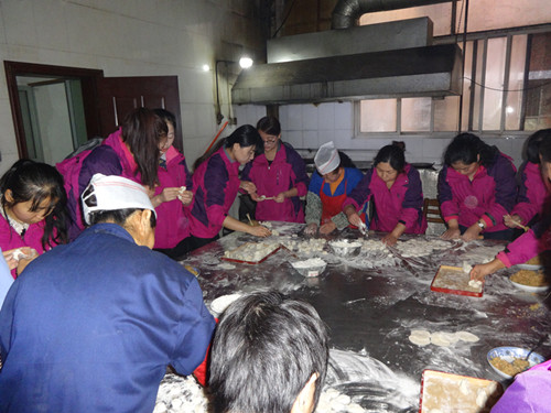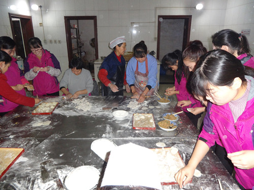 12月21日,又到了冬至吃饺子的节日,公司综合管理部精心谋划,组织往年包饺子能手和新进员工代表在公司职工食堂继续开展一年一度的包饺子活动。各路高手济济一堂,摩拳擦掌,包饺子比赛拉开了帷幕。 早上8点半,各路高手来到食堂操作间,在食堂管理员宋顺明的安排下按照各自分工迅速进入到工作状态,大家分别在自己的拿手项目上各显神通:搓面球、擀面皮、包饺子、摆饺子。有的用料十足,包出的饺子个大肚圆,彰显出北方的大气与豪爽;有的大小均匀,包出的饺子精致美观,呈现出南方的清秀与灵动。元宝饺子、月牙饺子、大头娃娃饺子……大家欢乐地交流,认真地操作,时而探讨心得,时而过招切磋。看着自己包的饺子,大家的脸上都洋溢着幸福与自豪。有的说你包的没有我的好看,有的说你咋包的没有我快,食堂里充满了欢声笑语,成了一片欢乐的海洋。 中午开饭前,包好的饺子整整齐齐摞了有十几大笼,足够公司员工敞开肚吃,看着全体职工一边吃着热气腾腾的饺子一边聊着天,参加包饺子活动的各路高手心里暖暖的,他们用自己辛勤的劳动给这个寒冷的冬季增添了温暖的气息。