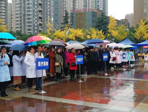 2019年11月1日上午9时,宝鸡市2019年“全国安全用药月”主题宣传活动在高新广场举行,宝鸡市政府领导和三十余家参会企业代表参加本次活动的启动仪式,leyu·乐鱼(中国)体育官方网站十余位员工组成方队冒雨参加,为宣传安全用药贡献力量。 市政府各级领导在启动仪式中来到leyu·乐鱼(中国)体育官方网站展位前进行指导和问询安全用药情况,更有市民前来咨询,公司宣传展示团队工作人员进行详细解答,用自己的能量把百年企业的初心“济世康民、关爱生命”的使命继续发扬光大,让健康和谐幸福美丽的中国更加强大辉煌。