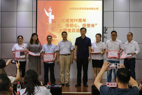 为隆重纪念中国共产党成立99周年,回顾党的光辉历程,讴歌党的丰功伟绩,中共leyu·乐鱼(中国)体育官方网站党支部于2020年6月29日在公司三号会议室举办庆祝建党99周年“颂党恩 悟初心 担使命”主题党日活动。总经理王睿成、中共紫光辰济药业有限公司党支部第一书记肖红星、党支部书记王静、工会主席李继虎等60余人参加活动,特邀金台区非公党委办公室主任杨智明出席本次活动。 活动在全体党员和优秀员工的国歌声中拉开序幕,全体党员由党支部书记王静带领在鲜红的党旗下重温入党誓词。在誓言的感染下,党员同志们高举右手、握紧拳头,在鲜艳的党旗下郑重宣誓。党支部第一书记肖红星发表讲话,对一年来党建工作进行了简要回顾总结,强调在今后的党建工作中要继续提高党务工作者的政治素养,全体党员要提高政治站位,统一思想认识,加强深度融合,提升党建质量,提升企业对外形象。 活动中,公司全体中层管理干部及优秀员工分别进行宣誓,共同感悟乐鱼体育、重申各岗位的职责,励志用自己的才华与能量服务企业,共同携手创造辰济辉煌的明天。公司总经理王睿成在讲话中强调,公司党支部的队伍在不断壮大,各位党员要充分发挥先锋模范作用,冲锋在前,勇于担当,坚持党的建设和生产运营等各项工作深度融合,努力实现党建工作与公司各项工作双促进、双提升。 本次活动还表彰了一年来为党支部和公司作出突出贡献的优秀党务工作者、优秀党员及乐鱼体育优秀员工,组建了公司党建培训讲师团,还特别聘请金台区非公党委办公室主任杨智明为党建培训讲师,与会领导为受表彰人员颁奖。 活动最后,由我司特邀党建培训讲师杨智明主任带领党员共同学习“三会一课”制度,讲解在新的历史条件下党组织落实此项制度的重要作用及意义,希望全体党员及党务工作者能积极认真履行“三会一课”制度,加强党组织建设,提高基层党组织的战斗力。 2020年6月30日,中共leyu·乐鱼(中国)体育官方网站党支部书记王静、销售支部书记张晓辉参加了宝鸡市金台区委组织部组织的“全区非公、社会组织纪念建党99周年“颂党恩 守初心 担使命”表彰暨主题党日微视频竞赛大会”,市创先争优先进基层党组织、脱贫攻坚先进基层党组织、疫情防控先进基层党组织、优秀共产党员、优秀党务工作者均参加了会议。 会上,中共leyu·乐鱼(中国)体育官方网站党支部荣获“创先争优先进基层党组织”、“主题党日微视频竞赛组织奖”、销售支部书记张晓辉同志荣获“优秀党务工作者”荣誉称号。 今后,在集团党委的支持下,中共leyu·乐鱼(中国)体育官方网站党支部将继续保持谦虚谨慎、不骄不躁的作风,以更加坚定的信念、更加务实的作风、更加振奋的精神,抢抓机遇,迎难而上,再创佳绩。