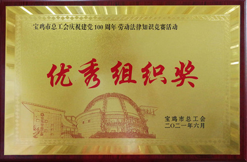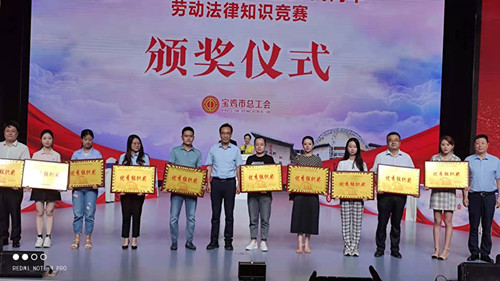 2021年6月28日,宝鸡市总工会在市工人文化宫举办了“庆祝建党一百周年劳动法律知识竞赛”活动。公司由行政部副经理白琳带领刘丽萍、王劝劝、赵琳玫组成四人团队。在历经两个月初赛与复赛的线上答题后,小组最终以高积分高排名获得了组织优秀奖。 这次为期两个月的知识竞赛活动调动了职工学法懂法的积极性,提高了广大干部职工的法律素质,增强了工会系统干部职工劳动法律素养,以及“尊法、学法、守法、用法”能力和依法维权能力,营造学法、用法的良好氛围,达到普法维权的宣传效果,推动了企业法治建设以及和谐劳动关系的构建。