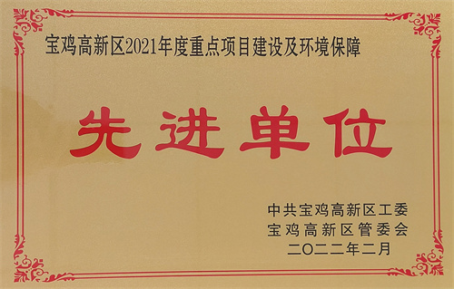 leyu·乐鱼(中国)体育官方网站荣获“宝鸡高新区2021年度重点项目建设及环境保障先进单位” |
