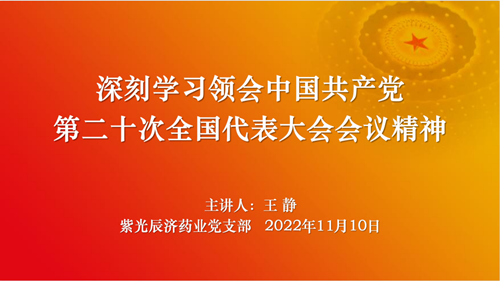 肖红星书记在总结讲话中强调用“九个深刻”理解吃透党的二十大会议精神,同时指出:公司发展的蓝图已经绘就,百年基业风华正茂,百年初心历久弥新。紫光辰济人要继续恪守早日成为知名医药企业的奋斗目标,以态度决定一切、细节决定成败的企业理念,奉行辰光泽惠,济世康民,德润天下,关爱生命的企业宗旨,用不伟大,少传奇,真心奉献,用心耕耘的企业态度,在实际工作中遵循一个信条,两个兼顾,三个不谈,四个不放过,五个坚持,六个牢记的工作原则,发扬辰济人披荆斩棘,不畏艰难,团结协作,奋勇拼搏的实干精神,全面学习把握落实党的二十大精神,在企业第二个百年征程上满怀豪情,信心百倍,凝聚起全体员工的智慧和力量,激发出无限的创造活力和发展动力,不断夺取新的胜利,收获新的成功。