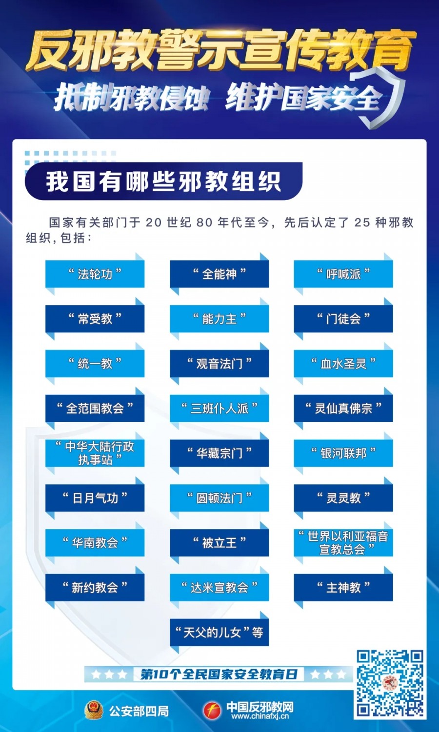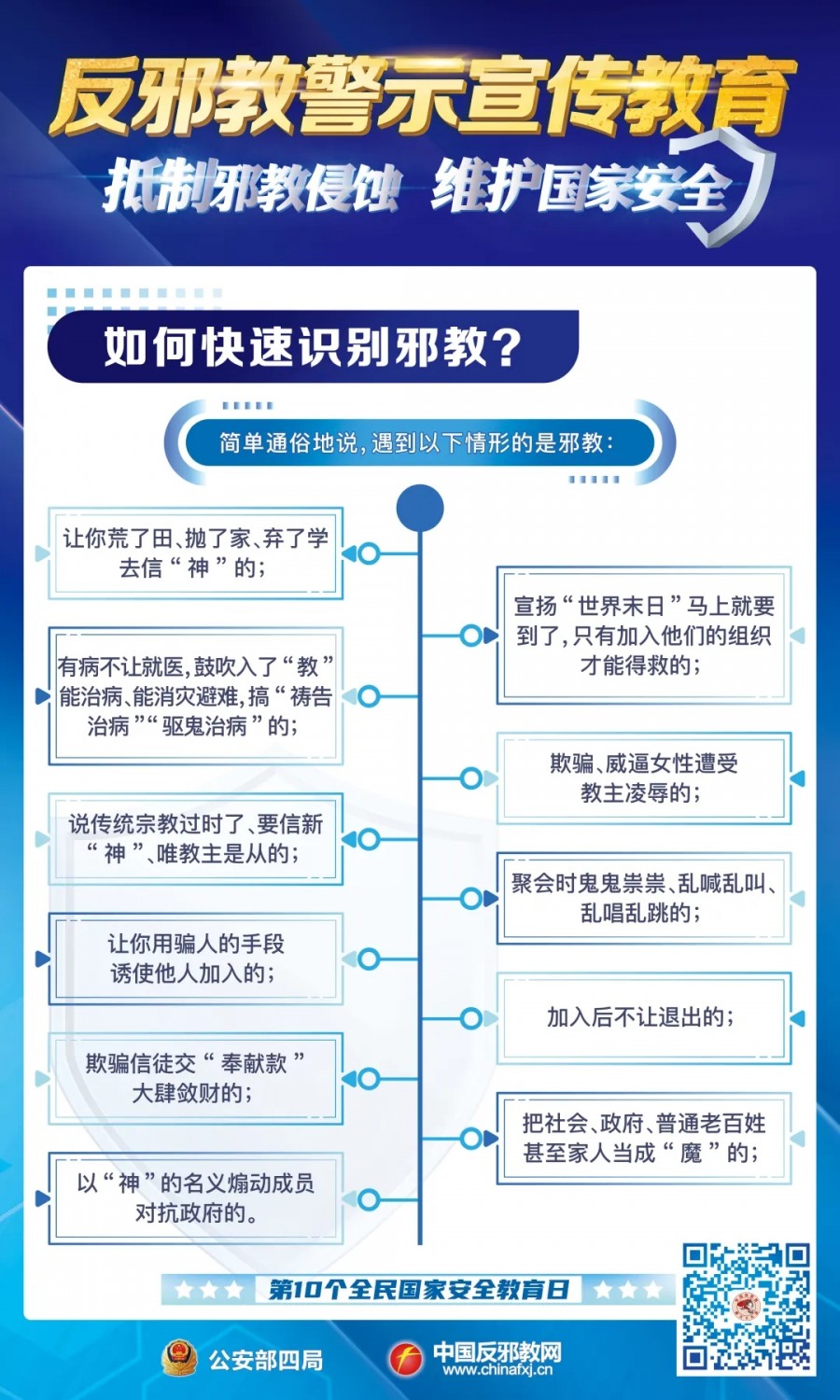 国家安全无小事,反邪防邪靠大家。让我们以全民国家安全教育日为契机,树牢总体国家安全观,崇尚科学、反对邪教、珍爱家庭、守护平安,共同筑牢维护国家安全和社会稳定的坚固防线!