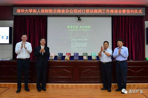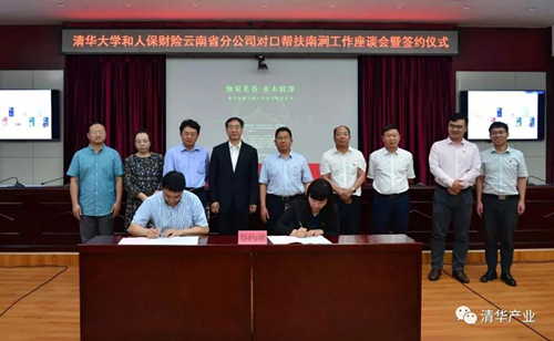 在姜胜耀、吉向阳、龙大伟、杜毓贞、朱涛、字文源,以及南涧县委常委、县委办公室主任张敬宗,清华大学挂职干部南涧县人民政府党组成员金峰,南涧镇副镇长、西山村第一书记沈正波等的见证下,王殿军与南涧县副县长吕亚新签订《清华附中对口帮扶协议》,汪健与西山村党总支书记赵维标签订《清华控股党委帮扶西山村党总支协议》,陈禹与吕亚新签订《南涧县与云南启迪无量山高原生态农业产业战略合作协议》和《南涧县与云南启迪康辉公司战略合作协议》,双磊与吕亚新签订《云南省人保财险公司与南涧县金融扶贫战略合作协议》,水滴公司联合创始人、水滴保总经理杨光与南涧县教育局局长杨映元签订《水滴公司捐赠贫困学生保险协议》。